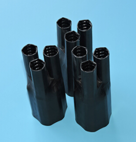 三芯熱縮指套采用交聯(lián)聚烯烴材料和熱熔膠復(fù)合而成,套在多芯電纜線芯分支處,加熱即收縮,內(nèi)壁的熱熔膠會將電纜緊緊粘住,起到防水防潮密封保護作用,外層的輻射交聯(lián)聚烯烴材料可起到電氣絕緣防護作用。一般常與1kv、10kv 戶內(nèi)外終端配套使用